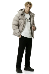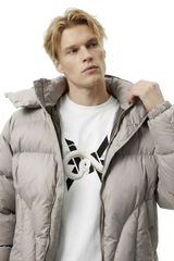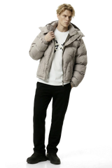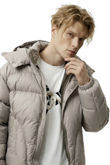 - Adjustable, padded hood with wind protective panel across top of the zipper and above the collar