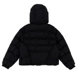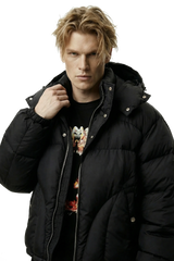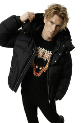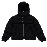 - Adjustable, padded hood with wind protective panel across top of the zipper and above the collar