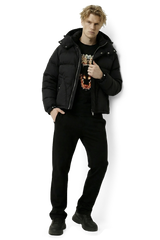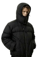 - Adjustable, padded hood with wind protective panel across top of the zipper and above the collar