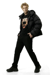 - Elasticated cuffs with adjustable size, metal snap fasteners