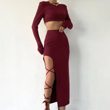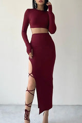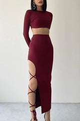 The two piece red mid-length lace dress